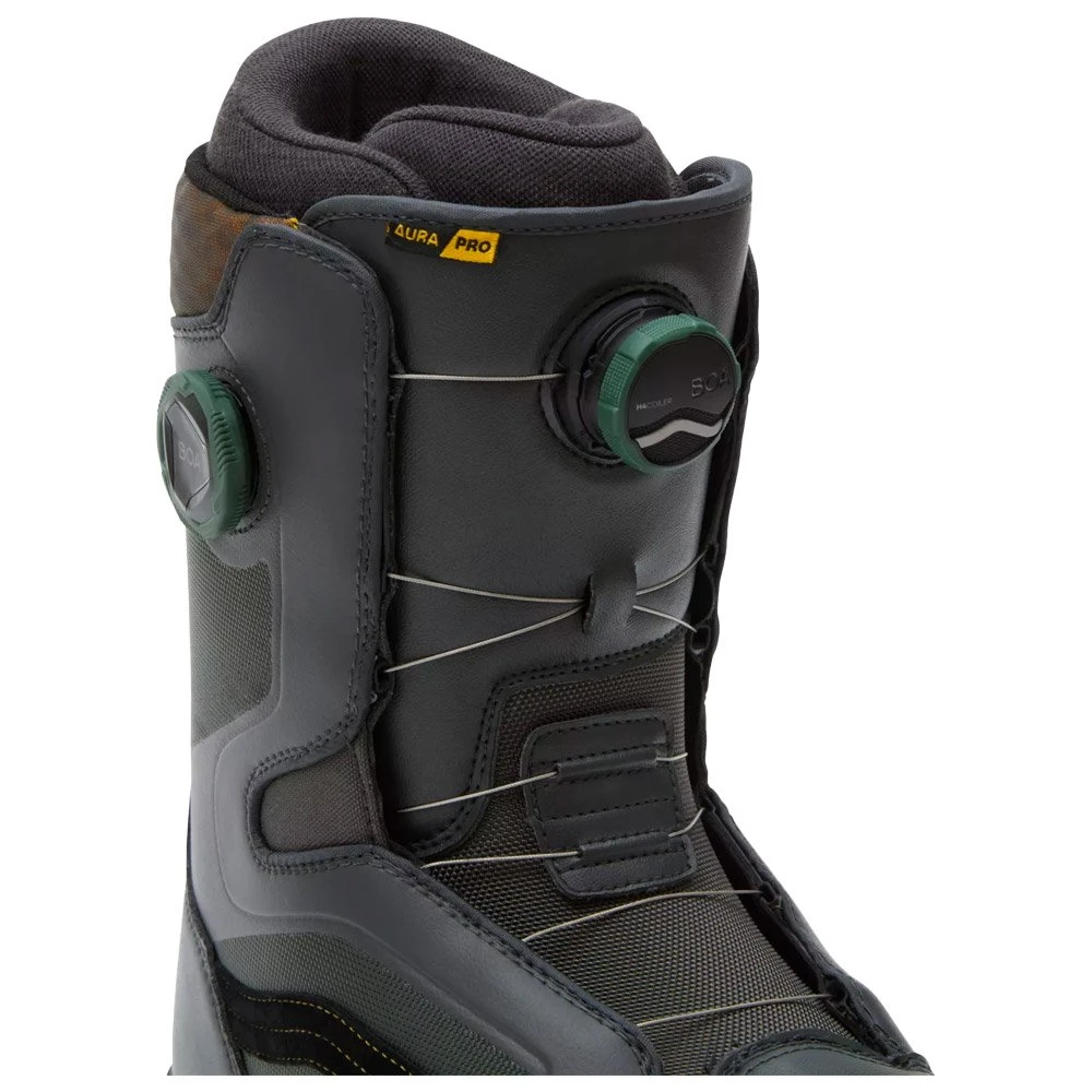 La bota de snowboard Vans Aura Pro es un modelo versátil, que incorpora un sistema de ajuste Double Boa para un ajuste preciso y rápido. Con su rigidez intermedia, ofrece un buen equilibrio entre comodidad y rendimiento.