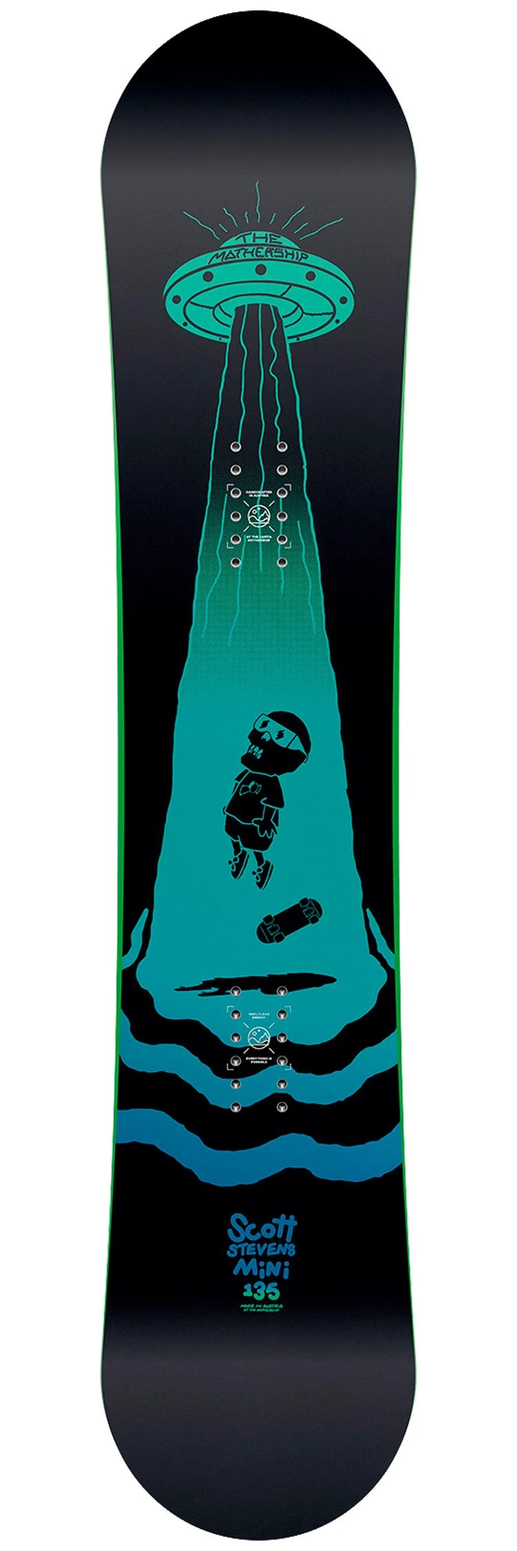 La tabla de snowboard para niños Capita Scott Stevens Mini está diseñada para ofrecer un comienzo suave a los principiantes. Para conseguirlo, combina un camber invertido con un flex suave, mientras que su forma simétrica twin-tip es ideal para una introducción a los trucos de freestyle.