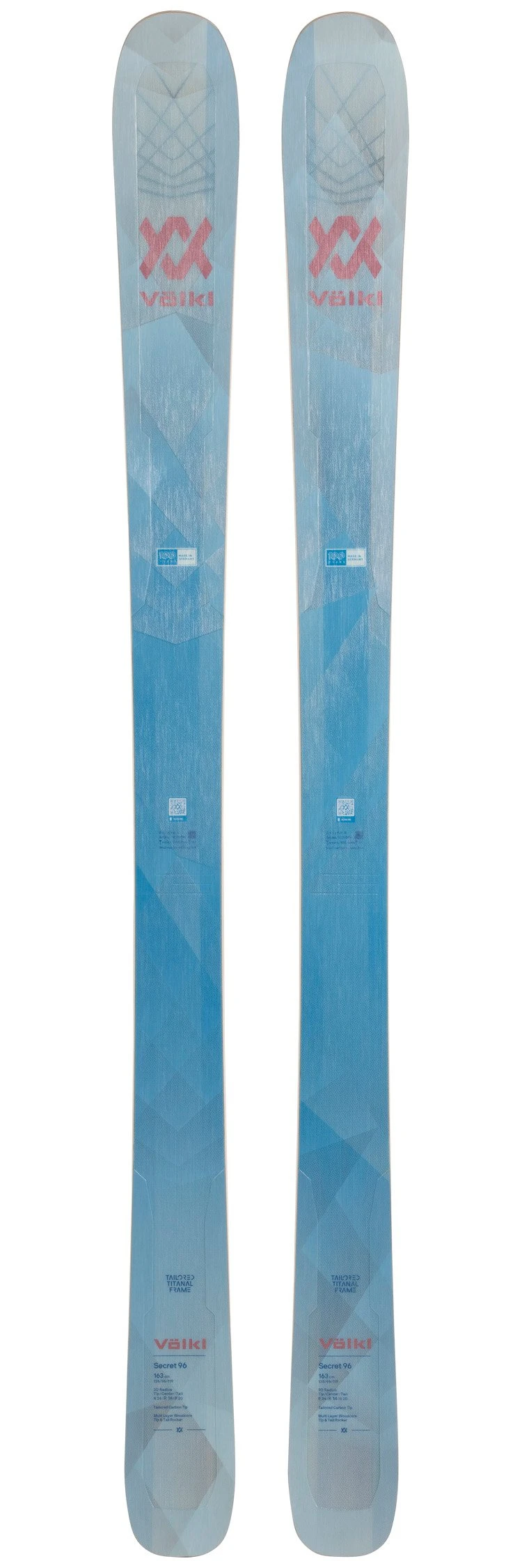 El Secret 96 es un esquí para mujer de la gama Volkl Secret freeride. Es el más delgado de la serie con 96 mm en el patín y una construcción que le permite pasar por todos los terrenos. Tiene un núcleo de madera reforzado con dos placas de titanio y carbono para una máxima estabilidad y potencia. El Secret 96 también cuenta con un doble rocker para una mayor maniobrabilidad en todo tipo de nieve.