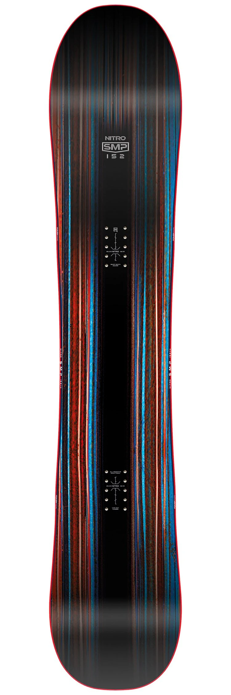 La SMP de Nitro Snowboards es una tabla orientada a all-mountain/freeride, con una forma ligeramente direccional, inserciones retraídas 15 mm. y un perfil camber extremadamente versátil. Estas características ofrecen una verdadera versatilidad, respaldada por un flex armoniosamente equilibrado entre potencia y facilidad de uso.